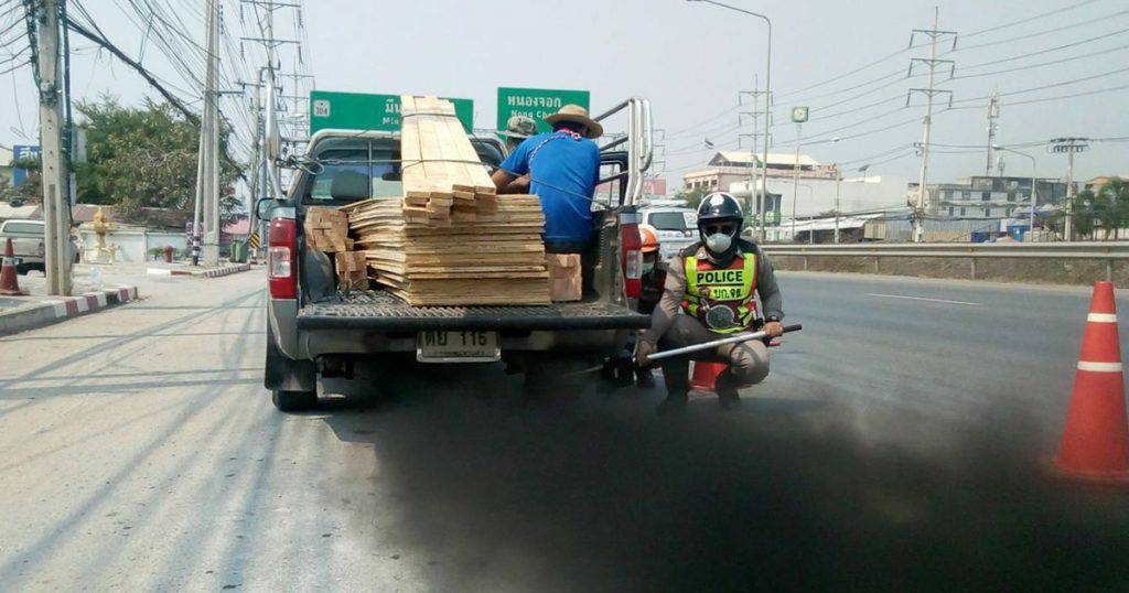 สำหรับแหล่งกำเนิดฝุ่น PM2.5 ในกรุงเทพฯ และปริมณฑลมาจากการขนส่งทางถนน 72.5% ประกอบด้วย รถบรรทุก28 % รถกระบะ 21% รถบัส 7% รถยนต์นั่ง 10% รถมอเตอร์ไซค์ 5% รถตู้ 1.5 % และอื่นๆ 27.5 % เนื่องจากการจราจรคับคั่ง ดังนั้นจึงตรวจรถยนต์ควันดำอย่างจริงจังตามมาตรการ “ตรวจจับ ปรับจริง-ห้ามใช้รถควันดำ