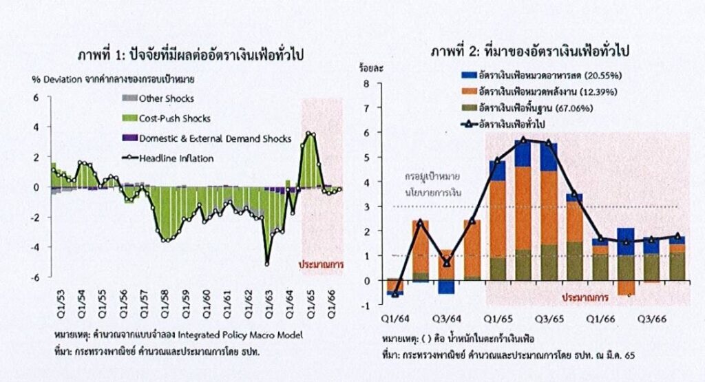 ทั้งนี้ แม้แนวโน้มเงินเฟ้อจะยังมีความเสี่ยงจากราคาน้ำมัน ที่มีโอกาสสูงขึ้นกว่าที่ประเมินไว้ และการส่งผ่านต้นทุนของผู้ประกอบการ อาจมากกว่าคาด แต่โอกาสที่อัตราเงินเฟ้อทั่วไปปี 2566 จะสูงกว่ากรอบเป้าหมายมีไม่มาก