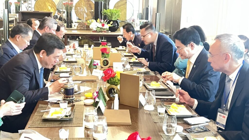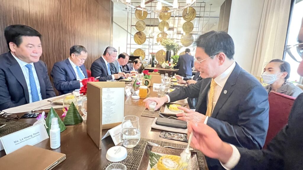 กรุงเทพฯ 21 เม.ย.-รมว.พณ. ไทยเชิญรัฐมนตรีการค้าเวียดนามชิมข้าวเหนียวหน้าต่างๆ โดยเฉพาะ “ข้าวเหนียวมะม่วง” และเมนู”ต้มข่าไก่” หวังประชาสัมพันธ์อาหารไทย
