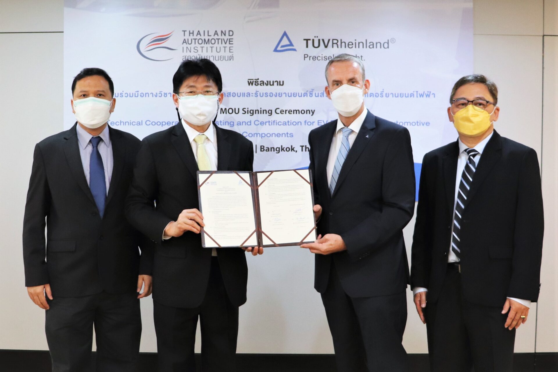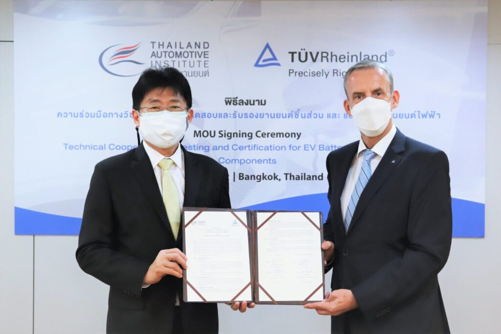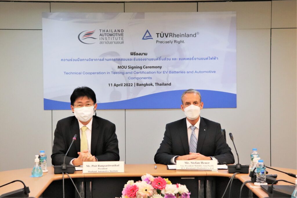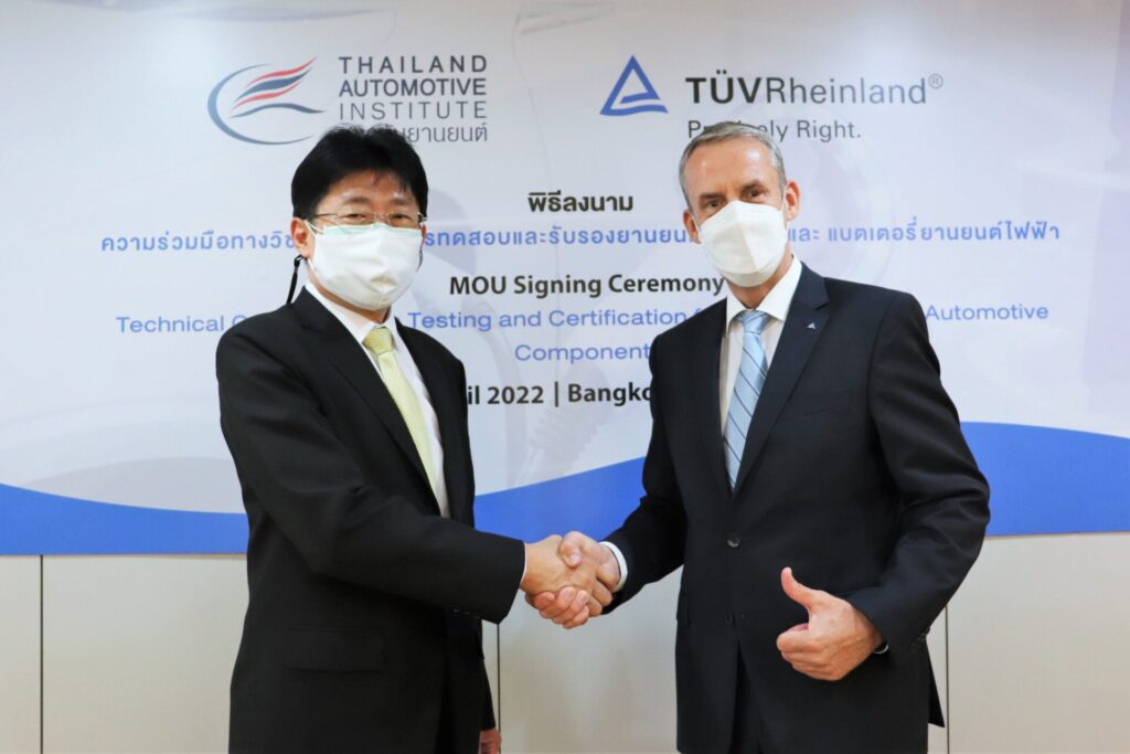 สถาบันยานยนต์ และ บริษัท ทียูวี ไรน์แลนด์ (ประเทศไทย) จำกัด ร่วมลงนามบันทึกความเข้าใจความร่วมมือทางวิชาการด้านการทดสอบและรับรองยานยนต์และชิ้นส่วน และแบตเตอรี่ยานยนต์ไฟฟ้า โดยนายพิสิฐ รังสฤษฎ์วุฒิกุล ผู้อำนวยการสถาบันยานยนต์ และ นายสเตฟาน ฮอยเออร์ กรรมการผู้จัดการ ฝ่ายยานยนต์ – เอเชียแปซิฟิก บริษัท ทียูวี ไรน์แลนด์ (ประเทศไทย) จำกัด เป็นผู้ลงนาม เมื่อวันจันทร์ที่ 11 เมษายน พ.ศ. 2565 ที่ผ่านมา ซึ่งทั้ง 2 หน่วยงานได้เล็งเห็นความสำคัญด้านการพัฒนาบุคลากรและเทคโนโลยีที่เกี่ยวข้องกับอุตสาหกรรมยานยนต์ในประเทศไทย พร้อมประสานความร่วมมือทางวิชาการด้านการทดสอบและรับรองผลิตภัณฑ์ยานยนต์และชิ้นส่วน รวมถึงแบตเตอรี่ยานยนต์ไฟฟ้า เพื่อทำการศึกษา แลกเปลี่ยน และค้นคว้า ยกระดับมาตรฐานการทดสอบยานยนต์ในประเทศไทยให้เป็นที่ยอมรับและเชื่อถือได้ในระดับสากลร่วมกัน