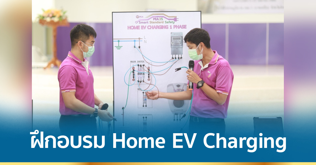 การไฟฟ้าส่วนภูมิภาค (PEA) จัดฝึกอบรมมาตรฐานการติดตั้งและการตรวจสอบมาตรฐานระบบอัดประจุยานยนต์ไฟฟ้าสำหรับบ้านที่อยู่อาศัย (Home EV Charging) ประจำปี 2565 เพื่อให้พนักงาน PEA มีความรู้ ความเข้าใจ ในการให้บริการติดตั้งระบบอัดประจุยานยนต์ไฟฟ้าประเภทบ้านที่อยู่อาศัย สามารถแนะนำผู้ใช้ไฟฟ้าและตรวจสอบมาตรฐานการติดตั้งระบบอัดประจุยานยนต์ไฟฟ้า เพื่อให้ผู้ใช้ไฟฟ้าเกิดความปลอดภัยในการใช้งาน รองรับความต้องการติดตั้งระบบอัดประจุยานยนต์ไฟฟ้าที่เพิ่มสูงขึ้น