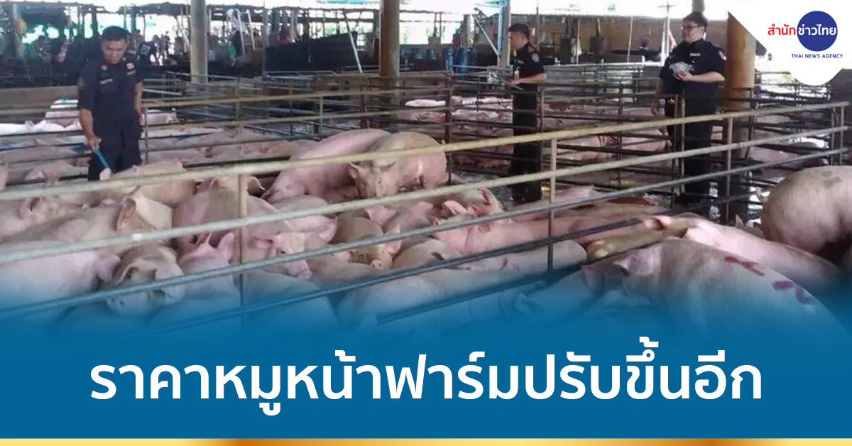 กรุงเทพ 25 เม.ย. -ราคาหมูหน้าฟาร์มปรับขึ้นอีกตั้งแต่เมื่อวานนี้ โดยตั้งแต่เดือนมีนาคมเป็นต้นมา ปรับขึ้นแล้ว 4 ครั้ง รวมแพงขึ้น 10 บาทต่อกิโลกรัม สมาคมผู้เลี้ยงสุกรแห่งชาติระบุว่า สาเหตุจากต้นทุนการผลิตสูงขึ้นซึ่งมีปัจจัยหลักจากราคาอาหารสัตว์ โดยยังรอแนวทางแก้ปัญหาของกระทรวงพาณิชย์