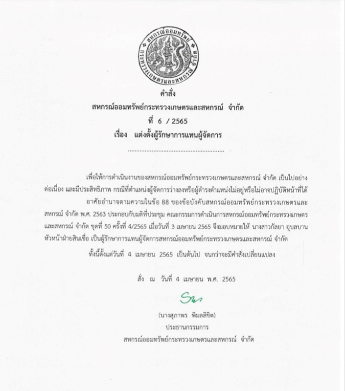 ล่าสุดกรมส่งเสริมสหกรณ์ในฐานะนายทะเบียนสหกรณ์สั่งการให้สำนักงานเขตพื้นที่ 1 เข้าไปตรวจสอบข้อเท็จจริงและให้สหกรณ์เพิกถอนมติด้วยแล้วเนื่องจากบุคคลดังกล่าวอยู่ระหว่างสอบวินัยจากบกพร่องการสอบบัญชี.-สำนักข่าวไทย