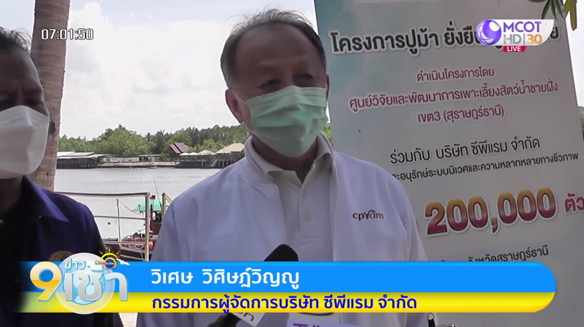 นายวิเศษ วิศิษฏ์วิญญู กรรมการผู้จัดการ บริษัท ซีพีแรม จำกัด กล่าวว่า โครงการนี้มาจากความห่วงใยของบริษัท ซีพีแรม ในฐานะเป็นบริษัทผลิตอาหาร ซึ่งวัตถุดิบหลักคือ ปูม้า ที่นำมาทำเป็นข้าวผัดปู ซึ่งเป็นยอดนิยมของคนไทย จึงมีความตระหนักดีว่า ปูม้าเป็นปูธรรมชาติ และจะต้องมีความยั่งยืน จึงคิดโครงการปล่อยพันธุ์ปูม้าลงทะเล โดยศูนย์วิจัยและพัฒนาเพาะเลี้ยงสัตว์น้ำชายฝั่งสุราษฎร์ธานี ได้มีการวิจัย ร่วมมือกันเพาะเลี้ยงให้มากขึ้น ให้แข็งแรง หรือ Young Crab ลงสู่ทะเล ฟื้นฟูธรรมชาติ โดยปีนี้ปล่อย 200,000 ตัวแรก และจะปล่อยเพิ่มอีก โดยมีโครงการมาแล้วหลายปี สะสมแล้วเป็นล้านตัว และระยะนี้เป็นช่วงที่ปูม้ามีรสชาติอร่อยมากที่สุดในประเทศไทย และจะให้คงความสมบูรณ์เช่นนี้ตลอดไป