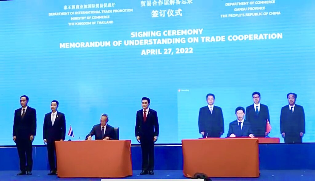 ทั้งนี้ ในนามของกระทรวงพาณิชย์มีความยินดีเป็นอย่างยิ่งที่ได้เข้าร่วมเป็นสักขีพยาน ในพิธีลงนามบันทึกความเข้าใจด้านความร่วมมือทางการค้าระหว่างกรมส่งเสริมการค้าระหว่างประเทศ กระทรวงพาณิชย์ แห่งราชอาณาจักรไทย กับ กรมพาณิชย์มณฑลกานซู่ สาธารณรัฐประชาชนจีน ซึ่งกระทรวงพาณิชย์จัดทำความร่วมมือกับมณฑลสำคัญของจีน เพื่อนำจุดเด่นของแต่ละมณฑลมาเสริมสร้างความแข็งแกร่งทางการค้าระหว่างกัน ซึ่งมณฑลกานซู่จะมีบทบาทสำคัญในการเชื่อมโยงความร่วมมือในด้านการค้าและการลงทุน ทั้งจากไทยและอาเซียนสู่จีน ไปจนถึงเอเชียกลางและยุโรปตะวันออก ซึ่งเป็นส่วนหนึ่งของเส้นทางการค้าทางบก ที่สำคัญสายหนึ่งของโลกมาตั้งแต่อดีตกาล หรือที่รู้จักกันดีในชื่อ “เส้นทางสายไหม”