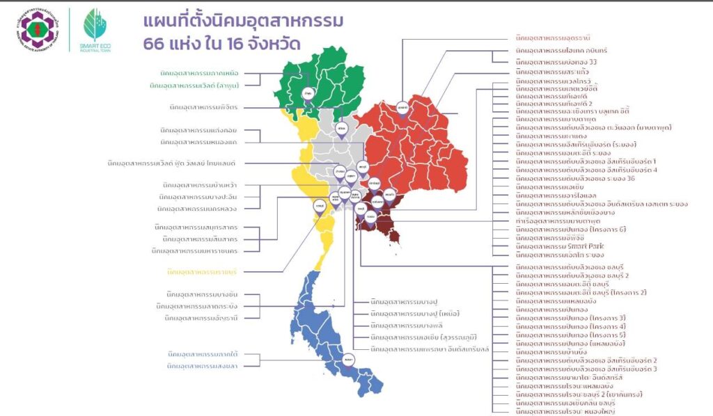สำหรับภาพรวมการลงทุนในพื้นที่นิคมอุตสาหกรรมภายใต้การกำกับดูแลของ กนอ.ทั้งนิคมอุตสาหกรรมที่ กนอ.ดำเนินการเอง และนิคมอุตสาหกรรมร่วมดำเนินงาน ปัจจุบันมีจำนวนทั้งสิ้น 66 แห่ง และท่าเรืออุตสาหกรรม 1 แห่ง ใน 16 จังหวัด เป็นนิคมอุตสาหกรรมที่ กนอ.ดำเนินการเอง 14 แห่ง และนิคมอุตสาหกรรมร่วมดำเนินงาน 46 แห่ง (โดยเป็นนิคมอุตสาหกรรมที่ยังไม่เปิดดำเนินการ 6 แห่ง) .-สำนักข่าวไทย