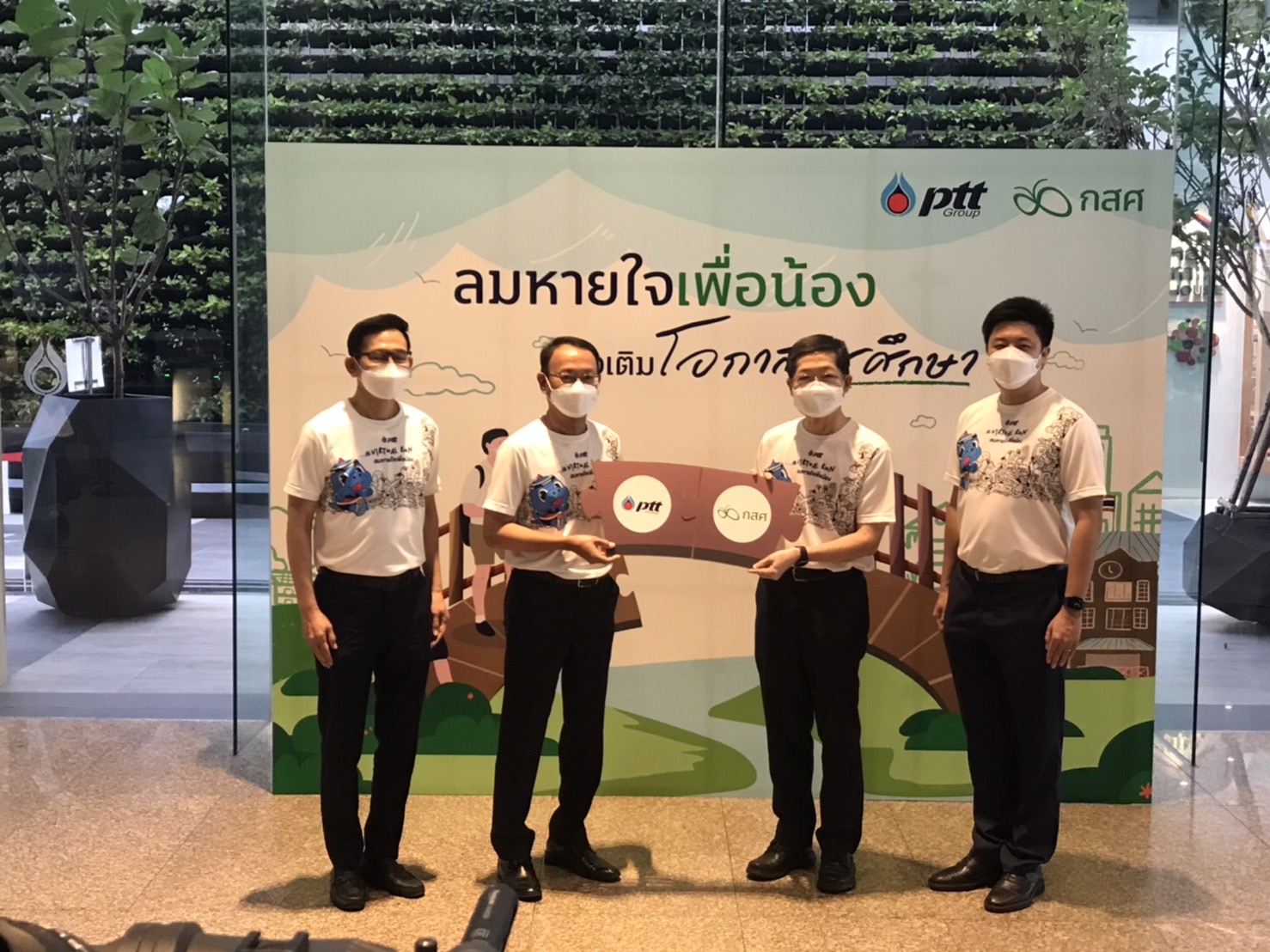 ศาสตราจารย์พิเศษ ดร.ทศพร ศิริสัมพันธ์ ประธานกรรมการ บริษัท ปตท.จำกัด(มหาชน) และ ดร.ประสาร ไตรรัตน์วรกุล ประธานกรรมการบริหารกองทุนเพื่อความเสมอภาคทางการศึกษา ร่วมกันเป็นประธานในพิธีลงนามความร่วมมือ”โครงการลมหายใจเพื่อน้อง”ระหว่าง บริษัท ปตท.จำกัด(มหาชน) กับ กองทุนเพื่อความเสมอภาคทางการศึกษา หรือ กสศ. โดยมีนายอรรถพล ฤกษ์พิบูลย์ ประธานเจ้าหน้าที่บริหารและกรรมการผู้จัดการใหญ่ บริษัท ปตท.จำกัด(มหาชน) ลงนามบันทึกแสดงเจตนารมณ์ร่วมกับ ดร.ไกรยส ภัทราวาท ผู้จัดการกองทุนเพื่อความเสมอภาคทางการศึกษา