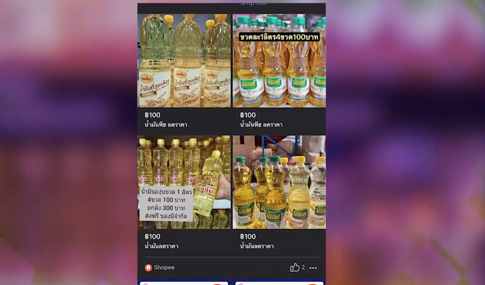 ราคาน้ำมันพืชในห้างสรรพสินค้าตอนนี้อยูที่ประมาณ 65-66 บาทต่อขวด สำนักข่าวไทยตรวจสอบไปยังช่องทางการขายออนไลน์พบว่า มีราคาขายที่ต่ำกว่าราคาตลาดทั่วไปหลายเท่าตัว โดยราคาต่ำสุดคือ 4 ขวด 100 บาท ตกขวดละ 25 บาท หรือจำหน่ายยกลัง 12 ขวด ในราคาเพียง 300 บาท ราคาต่างกันมากกว่า 2 เท่าตัว