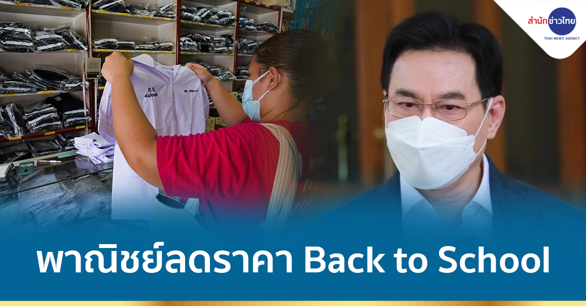 ทำเนียบฯ 6 พ.ค.- รมว.พาณิชย์ เตรียมเปิด “พาณิชย์ลดราคา Back to School” รับเปิดเทอม 8 พ.ค.นี้ ที่ศึกษาภัณฑ์ลาดพร้าว หวังช่วยลดค่าครองชีพผู้ปกครอง พร้อมย้ำตรึงราคาชุดนักเรียน