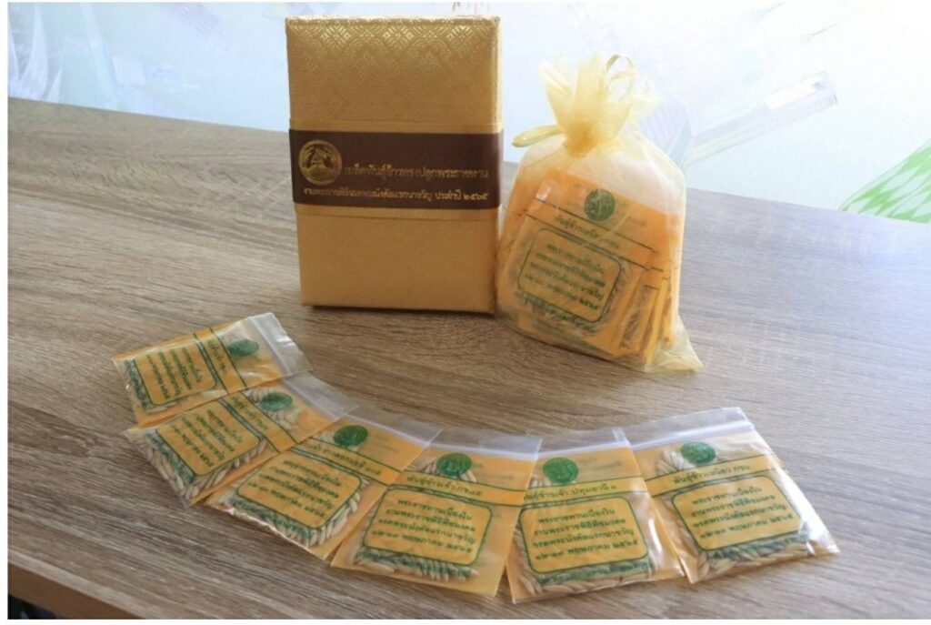 ส่วนพันธุ์ข้าวพระราชทานที่เตรียมไว้ในพระราชพิธีมีทั้งสิ้น 6 สายพันธุ์ น้ำหนักรวมทั้งสิ้น 1,728 กิโลกรัม ได้แก่ 1) ขาวดอกมะลิ 105 จำนวน 245 กิโลกรัม 2) ปทุมธานี 1 จำนวน 399 กิโลกรัม 3) กข 43 จำนวน 125 กิโลกรัม 4) กข6 จำนวน 70 กิโลกรัม 5) กข 87 จำนวน 300 กิโลกรัม และ 6) กข 85 จำนวน 589 กิโลกรัม กระทรวงเกษตรฯได้เตรียมแจกจ่ายพันธุ์ข้าวพระราชทานให้กับเกษตรกรและประชาชน เพื่อความเป็นสิริมงคลโดยสามารถสอบถามรายละเอียดเพิ่มเติมได้ที่กรมการข้าว กองเมล็ดพันธุ์ข้าว ที่เบอร์โทรศัพท์ 02-561-3794 ศูนย์เมล็ดพันธุ์ข้าวทั้ง 29 แห่ง ศูนย์วิจัยข้าวทั้ง 27 แห่ง และสถาบันวิทยาศาสตร์ข้าว จังหวัดสุพรรณบุรี นอกจากนี้ ผู้ที่สนใจยังสามารถรับเมล็ดพันธุ์พระราชทานผ่านการลงทะเบียนออนไลน์ได้ทาง https://rice.moac.go.th ซึ่งเมื่อลงทะเบียนทางออนไลน์แล้วสามารถเดินทางไปรับพันธุ์ข้าวพระราชทานได้ที่สำนักงานเกษตรจังหวัด หรือสำนักงานเกษตรอำเภอใกล้บ้านท่านหลังจากวันที่ 17 พฤษภาคม พ.ศ.2565 เป็นต้นไป โดยจะได้รับเมล็ดพันธุ์ข้าวพระราชทานคนละ 2 ซอง.-สำนักข่าวไทย