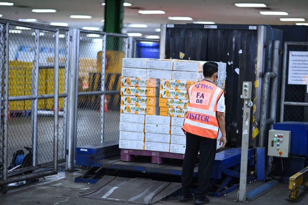 สนามบินสุวรรณภูมิ 10 พ.ค.-รมว.พณ นำคณะตรวจพื้นที่สนามบินสุวรรณภูมิดูขั้นตอนความพร้อมส่งผลไม้สดใหม่จากไทย ขึ้นเครื่องบินตรง”สู่ตลาดจีน” ย้ำแม้ปีนี้ผลผลิตผลไม้ไทยเพิ่มขึ้น เตรียมแผนทั้งส่งออกและกระจายบริโภคภายในประเทศอย่างเต็มทีเพื่อให้ชาวสวนได้ราคาดีขึ้น