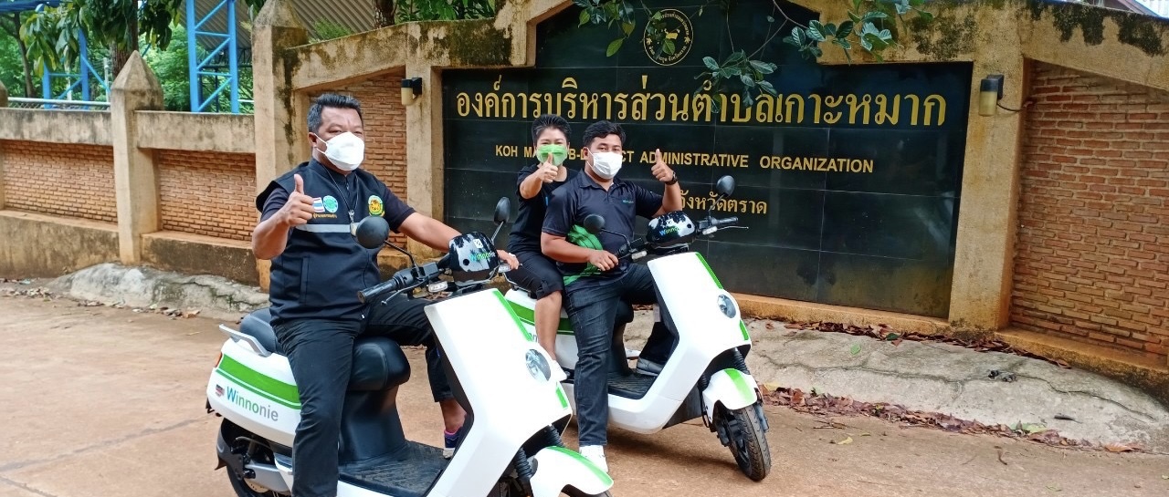 การสนับสนุนมอเตอร์ไซค์ไฟฟ้า Winnonie ให้กับ อบต. เกาะหมากและผู้ประกอบการในพื้นที่ทดลองใช้ เป็นหนึ่งในแนวทางการร่วมขับเคลื่อนให้เกาะหมากเป็นแหล่งท่องเที่ยวคาร์บอนต่ำแห่งแรกของไทย ริเริ่มโดยองค์การบริหารการพัฒนาพื้นที่พิเศษเพื่อการท่องเที่ยวอย่างยั่งยืน (อพท.) และเป็นการต่อยอดจากการดำเนินการศึกษาการดูดซับและกักเก็บก๊าซเรือนกระจกในทะเลด้วย Blue Carbon จากแหล่งหญ้าทะเล มุ่งสู่เป้าหมายการเป็นแหล่งท่องเที่ยวคาร์บอนต่ำ ครอบคลุมกิจกรรมทั้งบนบกและในทะเล ภายใต้เป้าหมายการสร้างความยั่งยืนและลดการปล่อยก๊าซเรือนกระจกสู่ชั้นบรรยากาศ