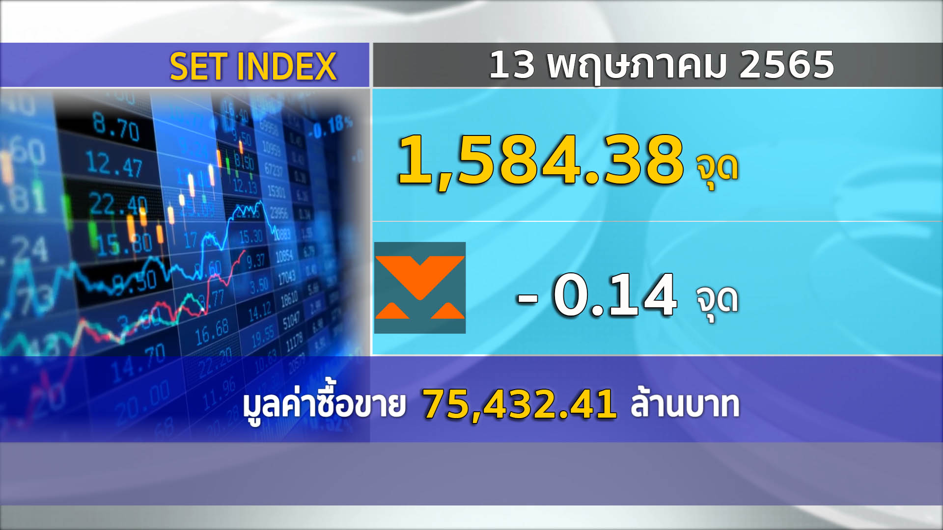 กทม. 13 พ.ค.- ตลาดหลักทรัพย์ ปิดวันนี้ที่ระดับ 1,584.38 จุด ลดลง 0.14 จุด (-0.01%) มูลค่าการซื้อขาย 75,432.41 ล้านบาท