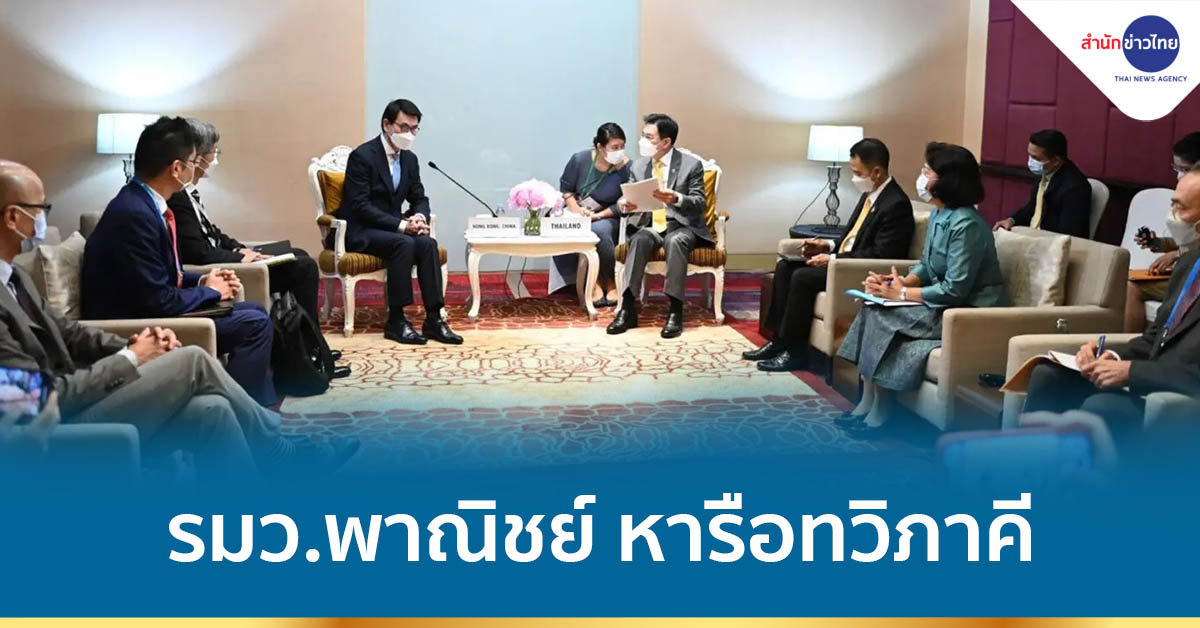 กรุงเทพฯ 19 พ.ค.- รมว.พาณิชย์ เผยหารือทวิภาคี รมว.พาณิชย์และพัฒนาทางเศรษฐกิจ ฮ่องกง โดยขอให้ไทยสนับสนุนฮ่องกงเข้าร่วมเป็นสมาชิก RCEP 15 ประเทศเป็นประเทศสมาชิกที่ 16 ในปีหน้า รวมถึงฮ่องกงพร้อมเปิดตลาดอาหาร-ผลไม้พรีเมียม-ดิจิทัลคอนเทนต์ไทยทุกด้านอย่างเต็มที่