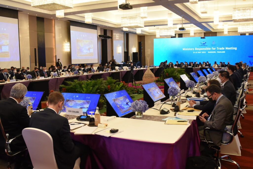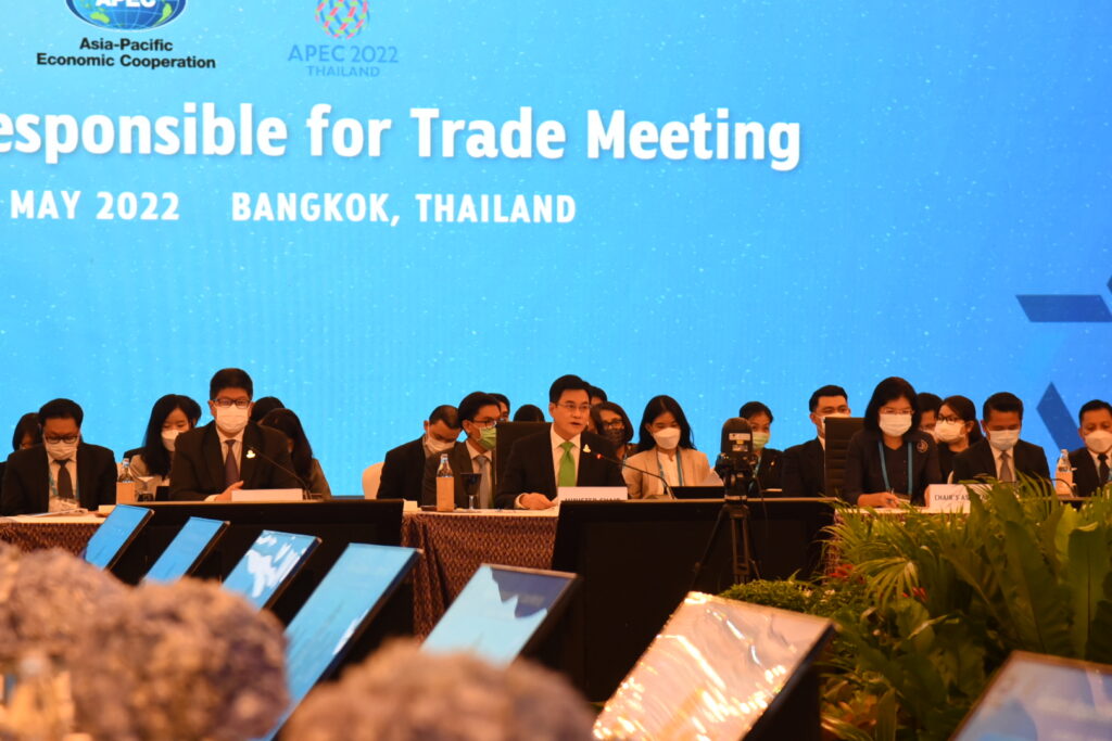 กรุงเทพฯ 21 พ.ค.-ไทยใช้เวทีประชุมรัฐมนตรีเศรษฐกิจเอเปค ที่มีชาติอภิมหาอำนาจ จีน-รัสเซีย-อเมริกา ร่วมมือกันส่งเสริมการค้าในระบบพหุภาคีและการขับเคลื่อนเศรษฐกิจและการเติบโตในสถานการณ์โควิด-19 เพื่อเดินหน้าไปสู่ความร่วมมือเป็น FTAAP ในอนาคตข้างหน้า
