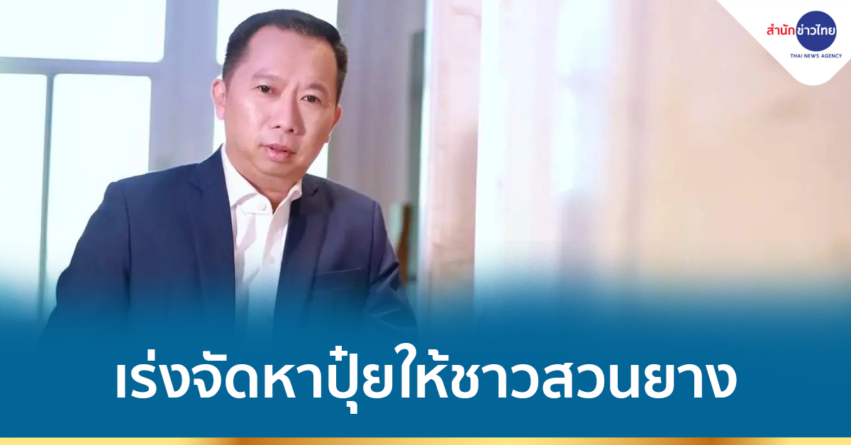 กรุงเทพฯ 1 มิ.ย.- ผู้ว่าการ กยท. เผยกำลังเร่งจัดหาปุ๋ยให้เกษตรกรชาวสวนยางพารา มั่นใจจัดสรรปุ๋ยถึงมือเกษตรกรทันตามฤดูกาลปลูก โดยไม่กระทบผลผลิตยางแน่นอน