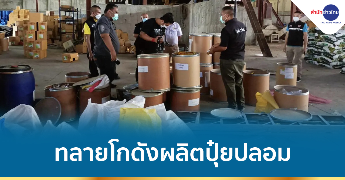 กรุงเทพฯ 1 มิ.ย.- กรมวิชาการเกษตรผนึกกำลังตำรวจทลายโกดังผลิตปุ๋ยและสารเคมีปลอม อายัดของกลางกว่า 10 ล้านบาท เผยพบติดฉลากอ้างชื่อเอกชนรายใหญ่หลายบริษัท เตรียมขยายผลจับกุม