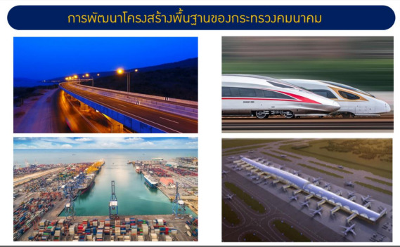 - ผลงานจากการใช้จ่ายงบประมาณในการพัฒนาโครงสร้างพื้นฐานเพื่อพี่น้องประชาชน ตลอดระยะเวลา 2 ปีกว่าที่ผ่านมา กระทรวงคมนาคม ได้ดำเนินการพัฒนาโครงสร้างพื้นฐานคู่ขนานกัน ทั้งทางถนน ทางราง ทางน้ำและทางอากาศ เพื่อให้เกิดโครงข่ายคมนาคมที่สมบูรณ์ในประเทศไทย ก่อให้เกิดประโยชน์ต่อคนไทย และสร้างมูลค่าเพิ่มต่อเศรษฐกิจไทย ซึ่งแต่ละโครงการมีความคืบหน้าไปค่อนข้างมาก ขณะที่หลายโครงการ เป็นการลงทุนต่อเนื่อง ต้องใช้เวลาในการดำเนินการ นอกจากนี้กระทรวงคมนาคมมีแผนที่จะลงทุนในอนาคต ทั้งแผนระยะกลางและแผนระยะยาว