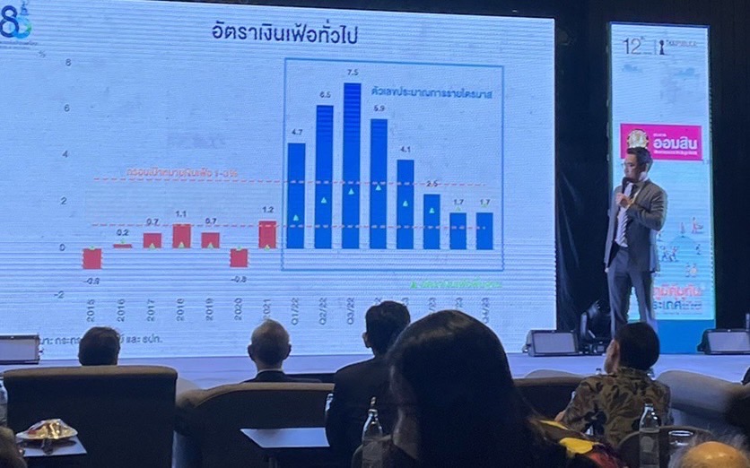 ปีนี้เศรษฐกิจโต 3.3% และปีหน้า 4.2% จากเศรษฐกิจโต เศรษฐกิจไทยกระทบหนักกว่า การฟื้นตัวก็ช้ากว่าชาวบ้านเนื่องจากไทยพึ่งพาการท่องเที่ยว แม้ตัวเลขจะฟื้นตัว แต่หากถามคนทั่วไปคนก็ไม่รู้สึก เพราะรายได้ที่เข้ามาไม่เหมือนเดิม แต่ความเสี่ยงเรื่องเงินเฟ้อเพิ่มขึ้นอย่างชัดเจน โดยเฉพาะหมวดพลังงาน แล้วขยายวงกว้างขึ้นเรื่อย ๆ ดังนั้นโจทย์ของนโยบายยังไม่เปลี่ยน คือ ทำอย่างไรก็ได้ให้เศรษฐกิจโตไปได้ต่อเนื่อง