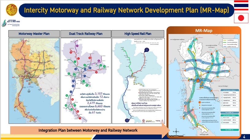 2. มิติการพัฒนาทางราง โครงข่ายรถไฟของไทยมีการเชื่อมโยงกับประเทศมาเลเซีย กัมพูชา และ สปป.ลาว ในปัจจุบันกระทรวงคมนาคมกำลังเร่งรัดการก่อสร้างโครงข่ายรถไฟทางคู่ เพื่อพัฒนาศักยภาพด้านการขนส่งสินค้าและผู้โดยสารผ่านระบบราง เพื่อลดต้นทุนการขนส่งสินค้าของประเทศ ซึ่งในปัจจุบันสามารถพัฒนารถไฟทางคู่ไปแล้ว 1,110 กิโลเมตร จากทั้งหมด 3,200 กิโลเมตร นอกจากนี้ กระทรวงคมนาคมยังมีโครงการพัฒนารถไฟความเร็วสูงอีก 2 เส้นทาง ได้แก่ รถไฟความเร็วสูง ช่วงกรุงเทพฯ-นครราชสีมา และในอนาคตจะขยายต่อไปถึงจังหวัดหนองคาย เพื่อเชื่อมต่อรถไฟความเร็วสูง สปป.ลาว-จีน และรถไฟความเร็วสูงอีกเส้นทางหนึ่ง ได้แก่ รถไฟความเร็วสูงเชื่อมสามสนามบิน (ดอนเมือง-สุวรรณภูมิ-อู่ตะเภา)