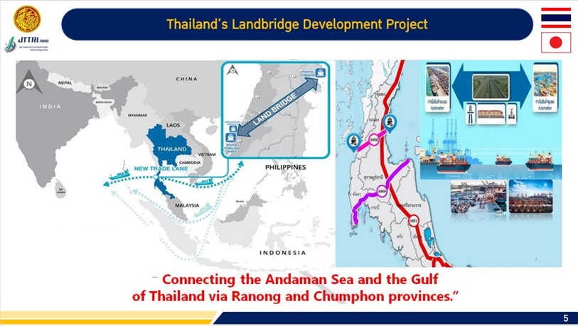 ในมุมมองที่เกี่ยวกับ “ความท้าทายและโอกาสของประเทศไทย” นายชยธรรม์ พรหมศร ปลัดกระทรวงคมนาคม กล่าวว่า การเพิ่มขึ้นของประชากรและการขยายตัวของเมือง เป็นพื้นฐานที่สำคัญที่มีผลต่อการขนส่งและโลจิสติกส์ในประเทศ การจัดทำยุทธศาสตร์พัฒนาระบบการขนส่งของไทย ระยะ 20 ปี (พ.ศ.2561-2580) มุ่งเน้นการรองรับวิถีชีวิตและพฤติกรรมที่เปลี่ยนแปลงไปตามการพัฒนาเทคโนโลยีด้านต่าง ๆ โดยยึดหลักการขนส่งที่ปลอดภัยและเป็นมิตรต่อสิ่งแวดล้อม การขนส่งที่เข้าถึงได้อย่างเสมอภาคและเท่าเทียม และการขนส่งที่มีประสิทธิภาพ โดยที่ประเทศไทยเป็นศูนย์กลางการขนส่งทางรางในภูมิภาคอาเซียน โครงการพัฒนาระเบียงเศรษฐกิจเชื่อมอ่าวไทยและทะเลอันดามันที่จังหวัดชุมพรและระนอง หรือ Land Bridge ที่มุ่งเน้นการพัฒนาความเชื่อมโยงของโครงข่ายการขนส่งทางบก ทางรางกับทางน้ำ ระหว่างไทยกับประเทศต่าง ๆ ซึ่งจะช่วยยกระดับการพัฒนาศักยภาพโลจิสติกส์และห่วงโซ่อุปทานทางทะเล และเตรียมความพร้อมสำหรับการเป็นประตูการค้าเชื่อมอาเซียนและจีนตอนใต้ในอนาคตต่อไป.-สำนักข่าวไทย