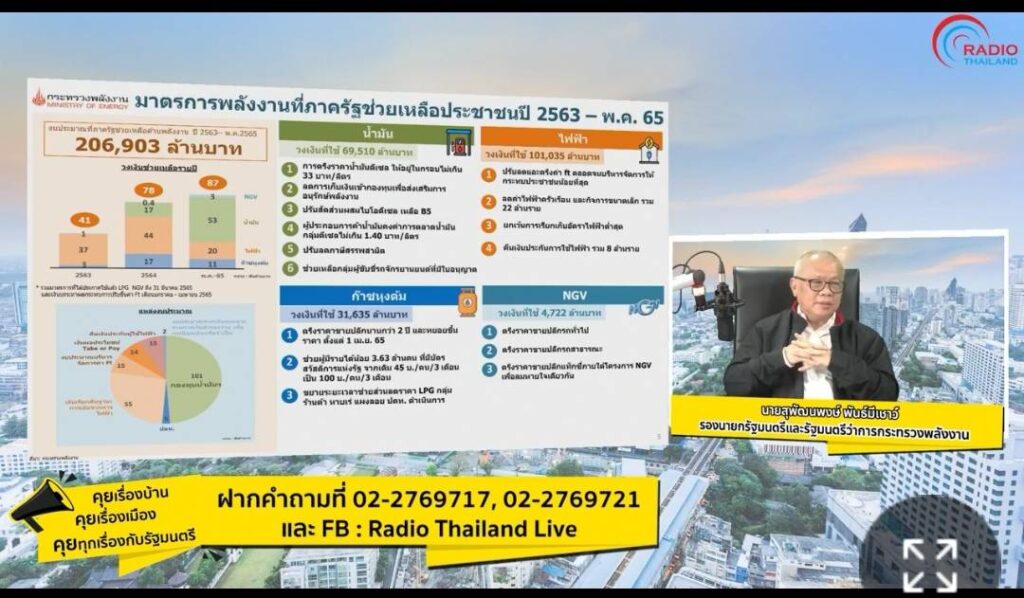 รมว.พลังงาน กล่าวว่า ตั้งแต่เกิดโควิด-19 รัฐได้ใช้เงินดูแลราคาพลังงานรวมกว่า 2 แสนล้านบาทแล้ว ทั้งดูแลค่าไฟฟ้า, แอลพีจี, น้ำมัน ใช้เงินหลายรูปแบบทั้งกองทุนน้ำมัน ภาษีต่างๆ ซึ่งการดูแลก็ต้องดูถึงเสถียรภาพการเงินการคลังไปด้วย เพราะหากการเงินมีปัญหาก็อาจประสบปัญหาเช่นเดียวกับเพื่อนบ้าน ไม่มีเงินซื้อน้ำมัน น้ำมันขาดแคลน ทั้งนี้ไทยเป็นผู้นำเข้าน้ำมันดิบสุทธิ 92% นำเข้าก๊าซธรรมชาติเพื่อผลิตไฟฟ้า 35% ท่ามกลางราคาที่สูงขึ้นและเงินบาทอ่อนค่าก็ทำให้ต้นทุนสูงขึ้นจึงต้องบริหารจัดการให้ดีที่สุด ทั้งลดค่าครองชีพเศรษฐกิจขยายตัว โดยจะเห็นได้ว่าราคาของไทยก็ต่ำเมื่อเทียบกับภูมิภาคนี้ แต่ราคาสูงเมื่อเทียบกับมาเลเซียและบรูไน เพราะผลิตน้ำมันเอง ได้มีการส่งออก จึงนำรายได้มาอุดหนุนราคาในประเทศ .-สำนักข่าวไทย