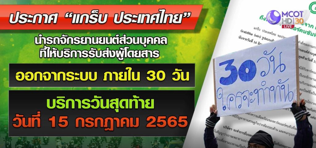 ล่าสุดกรมการขนส่งทางบกระบุว่าได้รับทราบการประกาศเปลี่ยนแปลงรูปแบบการให้บริการ GrabBike (win) ของบริษัท แกร็บ ประเทศไทย โดยมีการยืนยันว่าจะนำรถจักรยานยนต์ส่วนบุคคลออกจากระบบ และจะยุติการให้บริการในอีก 30 วันข้างหน้า ตามคำสั่งของกรมการขนส่งทางบก ทำให้เกิดความสับสนและกังวลในกลุ่มผู้ให้บริการที่เข้าร่วมกับบริษัท รวมถึงประชาชนบางส่วนที่เป็นผู้ใช้บริการเดินทางรูปแบบดังกล่าวเป็นอย่างมาก