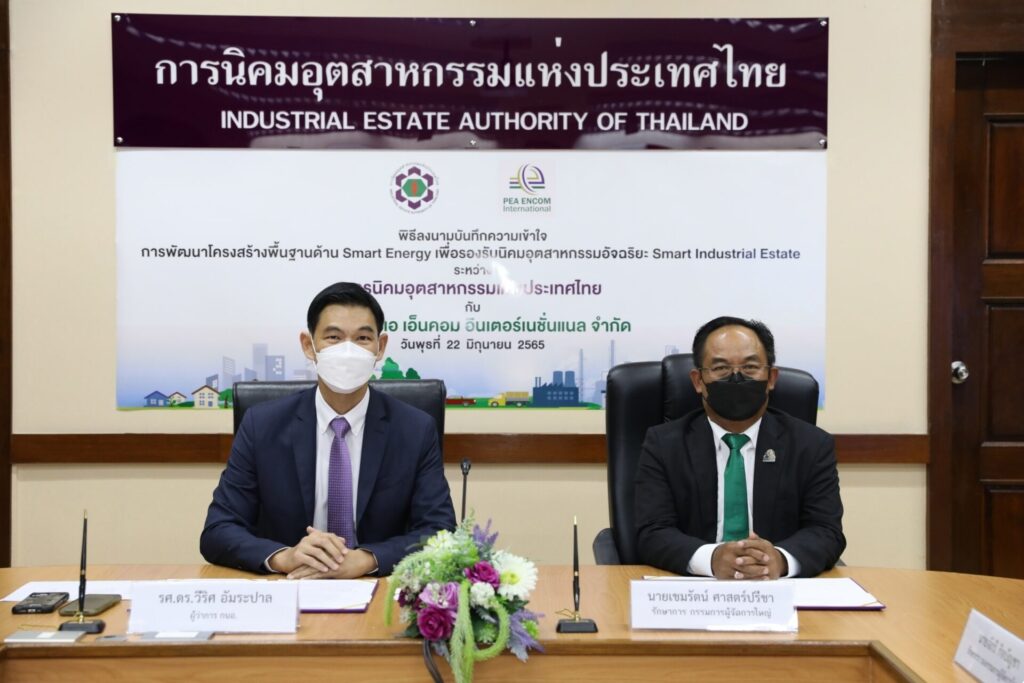 24 มิ.ย.- นายเขมรัตน์ ศาสตร์ปรีชา รองผู้ว่าการการไฟฟ้าส่วนภูมิภาค รักษาการกรรมการผู้จัดการใหญ่ บริษัท พีอีเอ เอ็นคอม อินเตอร์เนชั่นแนล จำกัด นายวีริศ อัมระปาล ผู้ว่าการการนิคมอุตสาหกรรมแห่งประเทศไทย ร่วมลงนามบันทึกข้อตกลงความร่วมมือ (MOU) การพัฒนาโครงสร้างพื้นฐานด้าน Smart Energy เพื่อรองรับนิคมอุตสาหกรรมอัจฉริยะ (Smart Industrial Estate) ด้าน Smart Energy และ Smart Grid ในพื้นที่นิคมอุตสาหกรรม จำนวน 15 แห่ง และท่าเรืออุตสาหกรรมมาบตาพุด