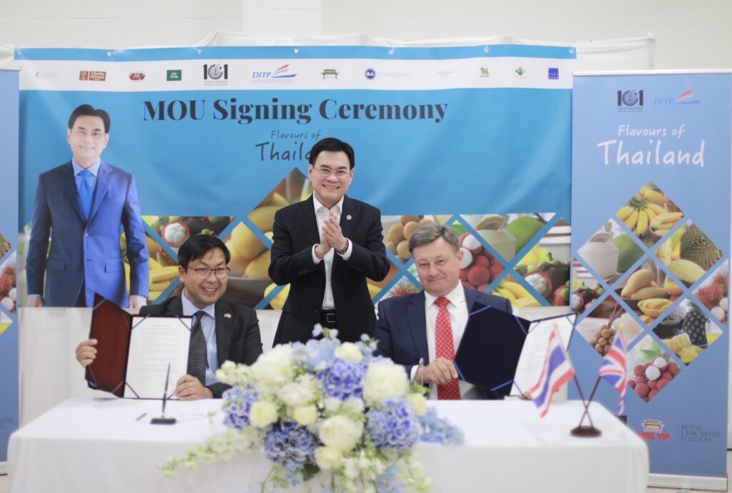 ช่วงบ่ายจัดกิจกรรมส่งเสริมการค้า และนำทีมเอกชนไทยลุยเมือง”ครอยดอน” (Croydon)ของ UK เซ็นต์ MOU ขายของให้อังกฤษรวดเดียว 4,600 ล้านบาท ทั้งไก่ ข้าวหอมมะลิ เครื่องปรุงรสและอาหารทะเลแปรรูป พร้อมอินฟลูเอนเซอร์ และบล็อกเกอร์ชื่อดังร่วมโปรโมทอาหารไทยที่ห้าง Wing Yip สหราชอาณาจักร โดยนำ 1.บริษัท C.P. Trading Group co., Ltd. ลงนามกับบริษัท Manning Impex Ltd สินค้าข้าวหอมมะลิและอาหาร คาดการณ์มูลค่าการสั่งซื้อภายใน 1 ปี 350 ล้านบาท 2. บริษัท Alisa Inter Co., Ltd. กับบริษัท Thai Tana Ltd. สินค้าอาหารและเครื่องปรุงรสคาดการณ์มูลค่าการสั่งซื้อภายใน 1 ปี 150 ล้านบาท และ 3. บริษัท CPF Co., Ltd. กับ Westbridge Food Group สินค้าไก่แปรรูป คาดการณ์มูลค่าการสั่งซื้อภายใน 1 ปี 4,000 ล้านบาท 4.บริษัท Thai Tana Ltd. กับ บริษัท ท่าเรือมารีน สินค้าอาหารทะเลแปรรูป คาดการณ์มูลค่าการสั่งซื้อภายใน 1 ปี 100 ล้านบาท