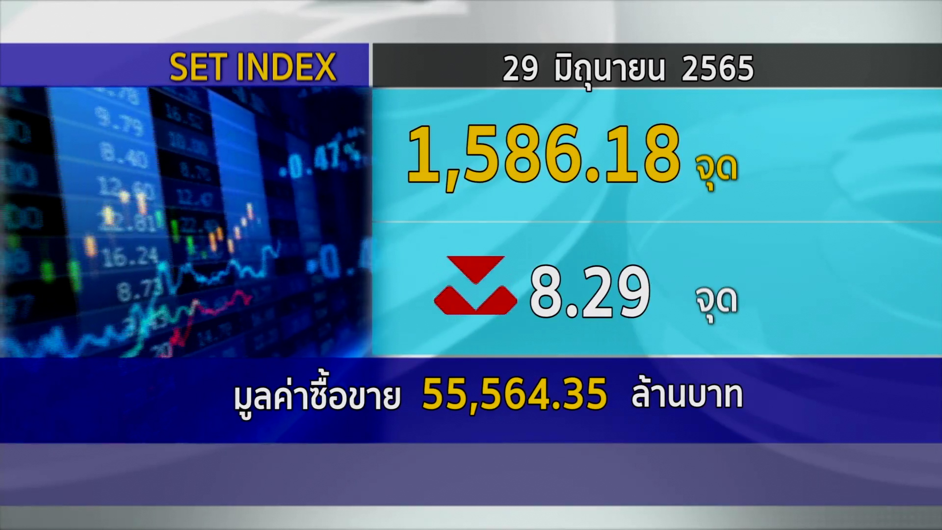 SET ปิดวันนี้ที่ระดับ 1,586.18 จุด ลดลง 8.29 จุด (-0.52%) มูลค่าการซื้อขาย 55,564.35 ล้านบาท นักวิเคราะห์ฯเผยตลาดหุ้นไทยวันนี้ปรับตัวลงตามตลาดหุ้นต่างประเทศ หลังกลับมากังวลการชะลอตัวของเศรษฐกิจสหรัฐฯ จากดัชนีความเชื่อมั่นผู้บริโภคของสหรัฐฯเมื่อคืนนี้ออกมาต่ำกว่าคาด และแรงกดดันจากการปิดสัญญา TFEX ซีรีย์ S50M22 เป็นซีรีย์ S50U22 ในสิ้นงวดไตรมาส 2/65 แนวโน้มพรุ่งนี้คาดแกว่งไซด์เวย์ พร้อมติดตามรายงานตัวเลข GDP สหรัฐฯคืนนี้ รวมถึงถ้อยแถลงประธานเฟดในการประชุม ECB พร้อมให้แนวต้าน 1,590-1,600 จุด แนวรับ 1,570-1,580 จุด .-สำนักข่าวไทย