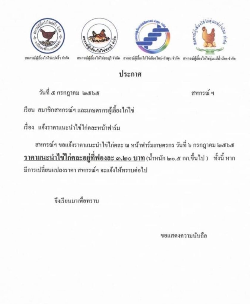 จากการดำเนินการส่งผลให้สถานการณ์ไข่ไก่ล้นตลาดเริ่มคลี่คลาย กระทั่งสหกรณ์ผู้เลี้ยงไก่ไข่หลายแห่งมีการประกาศราคาไข่ไก่คละ ณ หน้าฟาร์มเกษตรกร ในวันที่ 6 กรกฎาคม 2565 อยู่ที่ 3.20 บาทต่อฟอง จึงขอขอบคุณความร่วมมือของผู้ผลิตไข่ไก่และผู้ประกอบการไก่ไข่พันธุ์ที่เข้าร่วมกิจกรรมรักษาเสถียรภาพราคาไข่ไก่จนสถานการณ์ไข่ไก่ล้นตลาดเริ่มคลี่คลาย และปริมาณการผลิต – การบริโภคเริ่มกลับสู่สมดุลอีกครั้ง