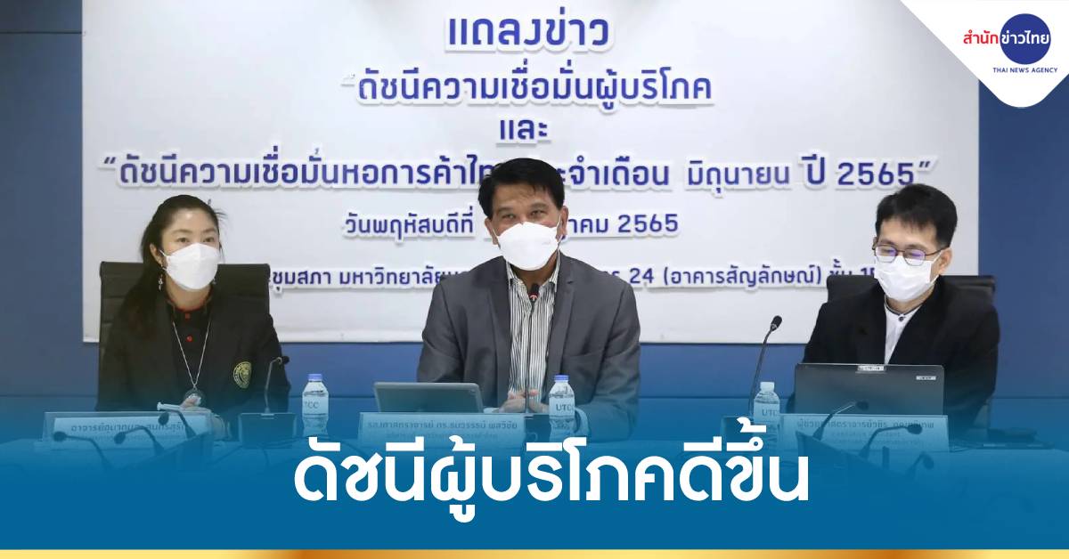 นายธนวรรธน์ พลวิชัย ประธานที่ปรึกษาศูนย์พยากรณ์เศรษฐกิจและธุรกิจ มหาวิทยาลัยหอการค้าไทยกล่าวถึงผลของการสำรวจความเชื่อมั่นของผู้บริโภคในเดือนมิถุนายน 2565 ว่า ดัชนีความเชื่อมั่นของผู้บริโภคปรับตัวดีขึ้นเป็นครั้งแรกในรอบ 6 เดือน เนื่องจากผู้บริโภครู้สึกว่าเศรษฐกิจเริ่มปรับตัวดีขึ้นเล็กน้อยหลังจากที่สถานการณ์โควิดในประเทศเริ่มปรับตัวดีขึ้นและมีการผ่อนคลายกฎระเบียบต่าง ๆ ให้ธุรกิจเริ่มเปิดดำเนินการได้เป็นปกติ ตลอดจนการผ่อนคลายให้นักท่องเที่ยวต่างชาติเดินทางเข้าประเทศได้สะดวกมากขึ้น แม้ว่าผู้บริโภคยังคงมีความกังวลเกี่ยวกับการเพิ่มขึ้นของราคาน้ำมันขายปลีกในประเทศ ตลอดจนปัญหาค่าครองชีพที่ปรับตัวสูงขึ้น รวมถึงความกังวลอย่างมากเกี่ยวกับสถานการณ์สงครามระหว่างรัสเซียและยูเครน ที่อาจส่งผลให้ราคาน้ำมันโลกมีแนวโน้มปรับตัวสูงขึ้น และกระทบต่อต้นทุนการผลิตสินค้า ซึ่งอาจเป็นปัจจัยที่เพิ่มแรงกดดันของการฟื้นตัวของระบบเศรษฐกิจโลกให้ช้าลงหรือชะลอตัวลง ส่งผลให้ความเชื่อมั่นของผู้บริโภคทุกรายการปรับตัวดีขึ้น