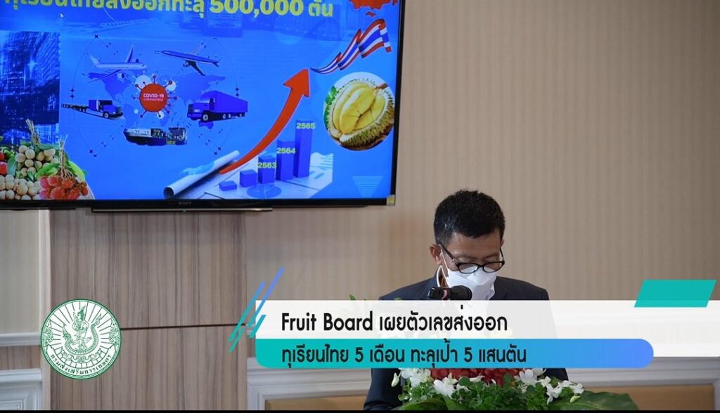 Fruit Board เผยแพร่ตัวเลขส่งออกทุเรียนไทย 5 เดือนทะลุเป้า 5 แสนตัน