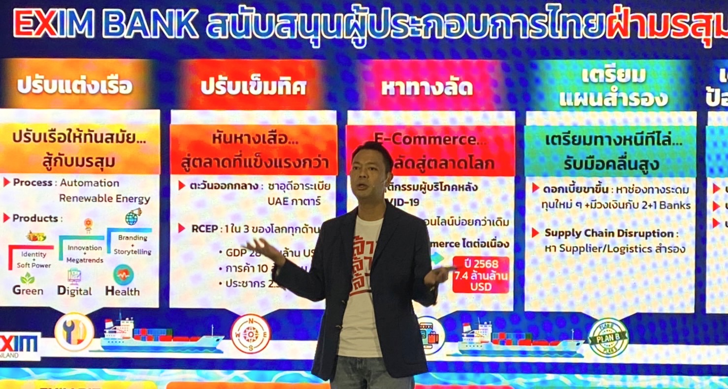 ในส่วนของเอ็กซิมแบงก์ เมื่อภาคเอกชนมีรายได้ จะให้เปิดบัญชีในการรับโอนเงิน และหักในส่วนเงินต้นและดอกเบี้ยส่วนที่เหลือจะคืนให้กับลูกค้า จึงไม่มั่นใจว่าเหตุการณ์ครั้งนี้ เอ็กซิมแบงก์ได้รับผลกระทบร้อยละ 60 เพราะลูกค้าโรงไฟฟ้า และสินค้าอุปโภคบริโภค ของเอ็กซิมแบงก์ในเมียนมาร์ จึงยังไม่ได้รับผลกระทบประมาณร้อยละ 40 ในส่วนที่เหลือ เนื่องจากได้เข้าไปลงทุนในเมียนมาร์มา 28 ปี ย่อมรับรู้สถานการณ์ในเมียนมาร์ การให้สินเชื่อบริษัทลูกเพื่อไปลงทุนในเมียนมาร์ หากค้างชำระหนี้ยังติดตามจากบริษัทแม่ในกรุงเทพฯได้ เพราะมีบริษัทแม่ดูแล อีกทั้งภาคเอกชนขนาใหญ่ของเมียนมาร์จะเปิดบัญชีต่างประเทศ เช่น ไทย สิงคโปร์ ไม่ได้เปิดบัญชีในเมียนมาร์ เพื่อใช้ซื้อขายสินค้าวงเงินเหล่านั้นเกิดนอกกเมียนมาร์ ธุรกรรมดังกล่าวจึงไม่ได้อยู่ในประกาศ ธนาคารกลางเมียนมาร์