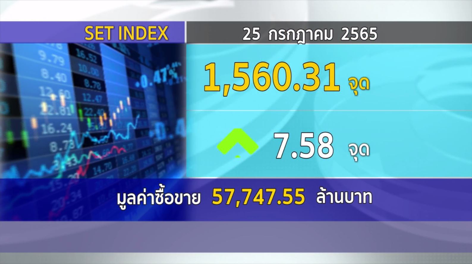กทม. 25 ก.ค.-ตลาดหลักทรัพย์ ปิดวันนี้ที่ระดับ 1,560.31 จุด เพิ่มขึ้น 7.58 จุด (+0.49%) มูลค่าการซื้อขายราว 57,747.55 ล้านบาท