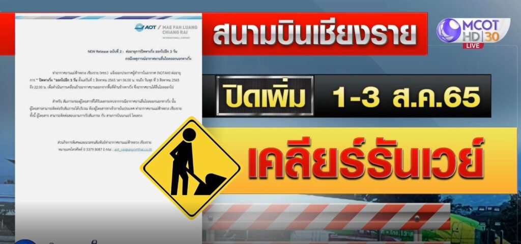 ทั้งนี้ การหยุดให้บริการ 1 วัน ฝ่ายบริหารท่าอากาศยานแม่ฟ้าหลวง ระบุว่าจะกระทบเที่ยวบินเข้าและออกสนามบินแม่ฟ้าหลวง วันละ 34 เที่ยวบิน รวมวันนี้ด้วยเป็น 4 วัน 136 เที่ยวบิน