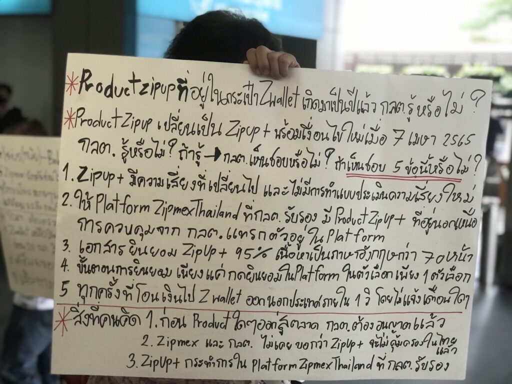 ก.ล.ต. 1 ส.ค.-กลุ่มผู้เสียหายกว่า 100 คน รวมตัวกันที่สำนักงาน ก.ล.ต. เรียกร้องตรวจสอบสินทรัพย์ที่เหลือใน Z wallet และเส้นทางการเงิน รวมถึงตรวจสอบว่าคำชี้แจงของ Zipmex เป็นความจริงหรือไม่ ขณะที่ ก.ล.ต.ได้ตั้งโต๊ะรับคำร้องของกลุ่มผู้เสียหาย