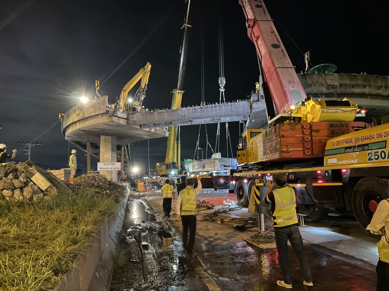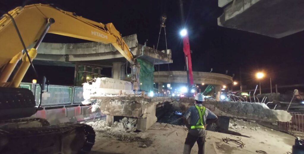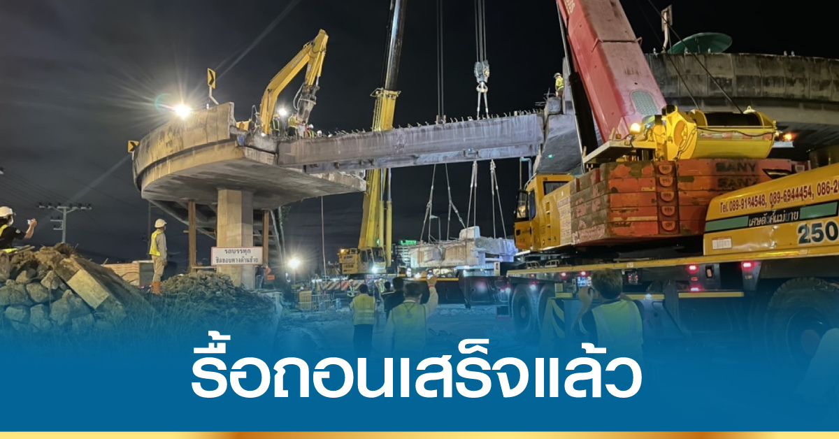โดยขั้นตอนรื้อคานทั้ง 4 คาน กรมทางหลวงได้เริ่มจากการสกัดและตัดราวสะพาน หลังจากนั้นใช้รถเครนขนาด 200 ตัน ยกคานลง แล้วทำการขนย้ายออกจากพื้นที่ก่อสร้าง พร้อมตรวจสอบความสะอาดและความปลอดภัย ก่อนคืนผิวการจราจรให้ผู้ใช้ทางสัญจรได้เป็นปกติ อย่างไรก็ตาม การรื้อสะพานดังกล่าวก็เพื่ออำนวยสะดวกและความปลอดภัยด้านการจราจรให้กับผู้ใช้ทาง