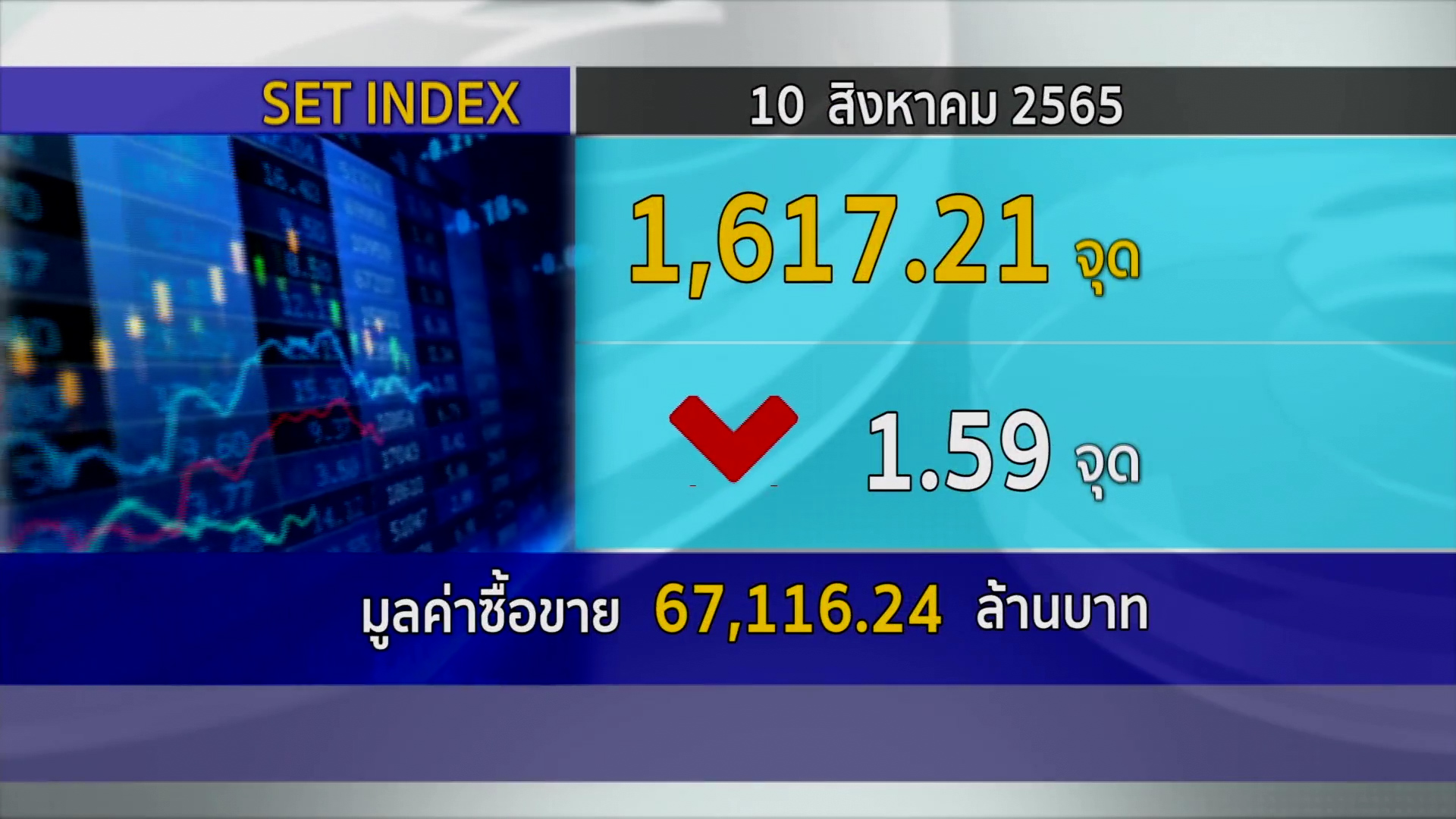 กทม. 10 ส.ค.- ตลาดหลักทรัพย์ ปิดวันนี้ที่ระดับ 1,617.21 จุด ลดลง 1.59 จุด (-0.10%) มูลค่าซื้อขาย 67,116.24 ล้านบาท