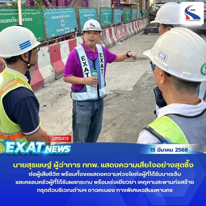 นายสุรเชษฐ์ เหล่าพูลสุข ผู้ว่าการการทางพิเศษแห่งประเทศไทย (กทพ.) เปิดเผยว่า ตนเองขอแสดงความเสียใจอย่างสุดซึ้งต่อผู้เสียชีวิตพร้อมทั้งขอแสดงความห่วงใยต่อผู้ที่ได้รับบาดเจ็บและครอบครัวผู้ที่ได้รับผลกระทบจากเหตุการณ์สะพานก่อสร้างทรุดตัว ในพื้นที่ที่อยู่ระหว่างก่อสร้าง ช่วงด่านเก็บค่าผ่านทางพิเศษดาวคะนอง ทางพิเศษเฉลิมมหานคร เมื่อวันที่ 15 มีนาคม 2568 เวลาประมาณ 01.30 น. ที่ผ่านมา จนเป็นเหตุให้มีผู้ได้รับบาดเจ็บไม่สาหัส จำนวน 24 ราย และเสียชีวิต จำนวน 5 ราย กทพ. จะเร่งพิจารณาแนวทางเยียวยาให้อย่างเหมาะสม โดยผู้รับเหมาจะดำเนินการจ่ายชดใช้ค่าเสียหายและค่าเยียวยาให้แก่ผู้เสียชีวิตรายละไม่ต่ำกว่า 1 ล้านบาท