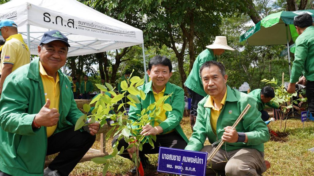 นายสมเกียรติ กิมาวหา รองผู้จัดการ ธ.ก.ส. เปิดเผยว่า ธ.ก.ส. พร้อมเป็นส่วนหนึ่งในการขับเคลื่อนยุทธศาสตร์ชาติ เพื่อยกระดับคุณภาพชีวิตของประชาชนในชนบท ควบคู่กับการดูแลสิ่งแวดล้อมอย่างยั่งยืน โดยที่ผ่านมาได้ดำเนินโครงการธนาคารต้นไม้สนับสนุนให้เกษตรกรและชุมชนปลูกป่า 3 อย่าง ประโยชน์ 4 อย่าง โดยมีชุมชนเข้าร่วมโครงการแล้ว 6,844 ชุมชน มีผู้ร่วมปลูกต้นไม้กว่า 130,000 ราย มีต้นไม้ปลูกเพิ่มในประเทศกว่า 1.2 ล้านต้น และเพื่อสร้างมูลค่าเพิ่มในเชิงเศรษฐกิจให้กับเกษตรกรผู้ปลูกต้นไม้ มีการแปลงมูลค่าต้นไม้เป็นทรัพย์สิน เพื่อนำมาใช้เป็นหลักทรัพย์ค้ำประกันสินเชื่อ รวมถึงการสนับสนุนกิจกรรมลดก๊าซเรือนกระจก โดยคำนวณปริมาณการกักเก็บคาร์บอนของต้นไม้ตีเป็นมูลค่า เพื่อช่วยลดปัญหาโลกร้อนและสร้างรายได้ให้กับชุมชน