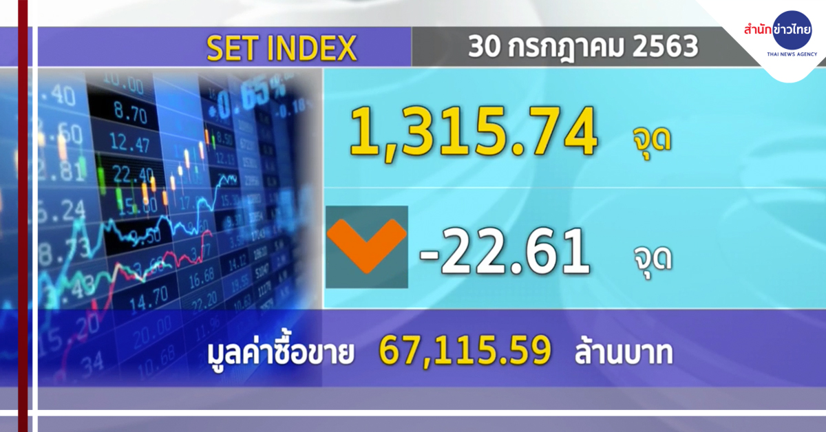 กทม. 30 ก.ค.- ตลาดหลักทรัพย์ ปิดวันนี้ที่ระดับ 1,315.74 จุด ลดลง 22.61 จุด (-1.69%) มูลค่าการซื้อขาย 67,115.59 ล้านบาท.-สำนักข่าวไทย