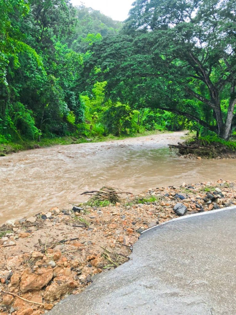4.เลย 1 แห่ง ทางหลวงหมายเลข 2108 ตอน ธาตุจอมศรี – ชมเจริญ น้ำป่าไหลหลากทำให้พื้นที่โครงการก่อสร้างทางทำให้ทางเบี่ยงบริเวณก่อสร้างขาด ช่วง กม.ที่ 0 ใช้เส้นทางเลี่ยงจากอำเภอปากชม ทางหลวงหมายเลข 2108 เลี้ยวซ้ายเข้าสู่ทางหลวงชนบท ลย.4009 ประมาณ 1.4 กิโลเมตร และเลี้ยวขวาไป 1.8 กิโลเมตรเข้าสู่ทางหลวงหมายเลข 201 เพื่อไปยังจังหวัดเลย คาดว่าจะเปิดการจราจรได้วันที่ 3 สิงหาคม 2563