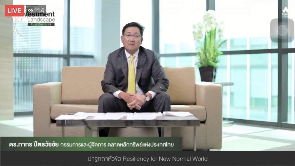นายภากร ปีตธวัชชัย กรรมการและผู้จัดการ ตลาดหลักทรัพย์แห่งประเทศไทย (ตลท.) กล่าวว่า วิกฤติโควิด-19 ถือเป็นโอกาสท่ามกลางวิกฤติ แต่องค์กรต้องมีการปรับตัวสู่ New Normal โดยต้องมีความยืดหยุ่นขององค์กรและปรับองค์กรให้ประสิทธิภาพสามารถแข่งขัน โดยต้องมีการนำดิจิทัลเข้ามาช่วย โดยเฉพาะในการเก็บข้อมูลและนำข้อมูลต่าง ๆ มาวิเคราะห์ เพื่อตอบโจทย์ความต้องการลูกค้า และเพื่อให้เข้าใจพฤติกรรมของลูกค้าในอนาคต และสุดท้าย คือ การปรับแนวคิดของคนในองค์กรว่าต้องปรับตัวให้ทันต่อสถานการณ์.-สำนักข่าวไทย