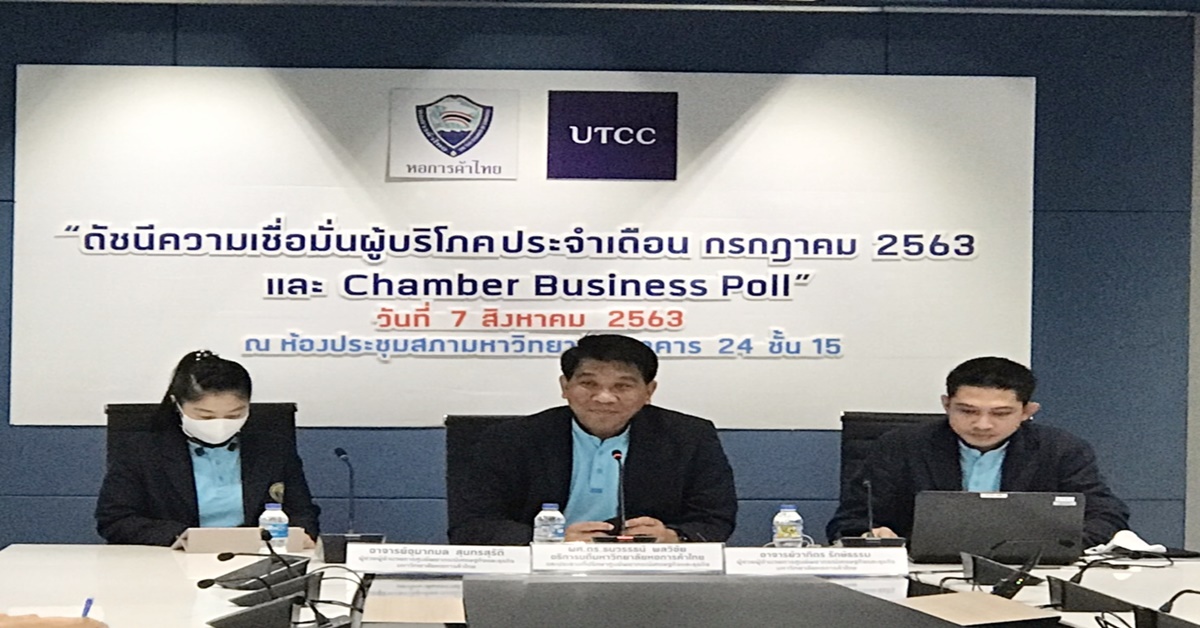 นายธนวรรธน์ พลวิชัย อธิการบดีมหาวิทยาลัยหอการค้าไทย เปิดเผยว่า ดัชนีความเชื่อมั่นผู้บริโภคเดือนกรกฎาคม 2563 จาก 49.2 ในเดือนที่ผ่านมาสู่ระดับ 50.1 ปรับตัวดีขึ้นเป็นเดือนที่ 3 จากการคลายล็อกของรัฐบาลและเริ่มกลับมาทำมาหากินได้ปกติ แต่ยังไม่ดีไปกว่าช่วงก่อนโควิด ส่วนดัชนีความเชื่อมั่นต่อเศรษฐกิจโดยรวมอยู่ที่ 42.6 จาก 41.4 ในเดือนมิถุนายน 2563 ทั้งนี้ กลุ่มตัวอย่างเห็นว่าภาวะเศรษฐกิจโดยรวมอยู่ในระดับที่ดี ปานกลาง และแย่ ประมาณ 3.2% 36.1% และ 60.7% ตามลำดับ