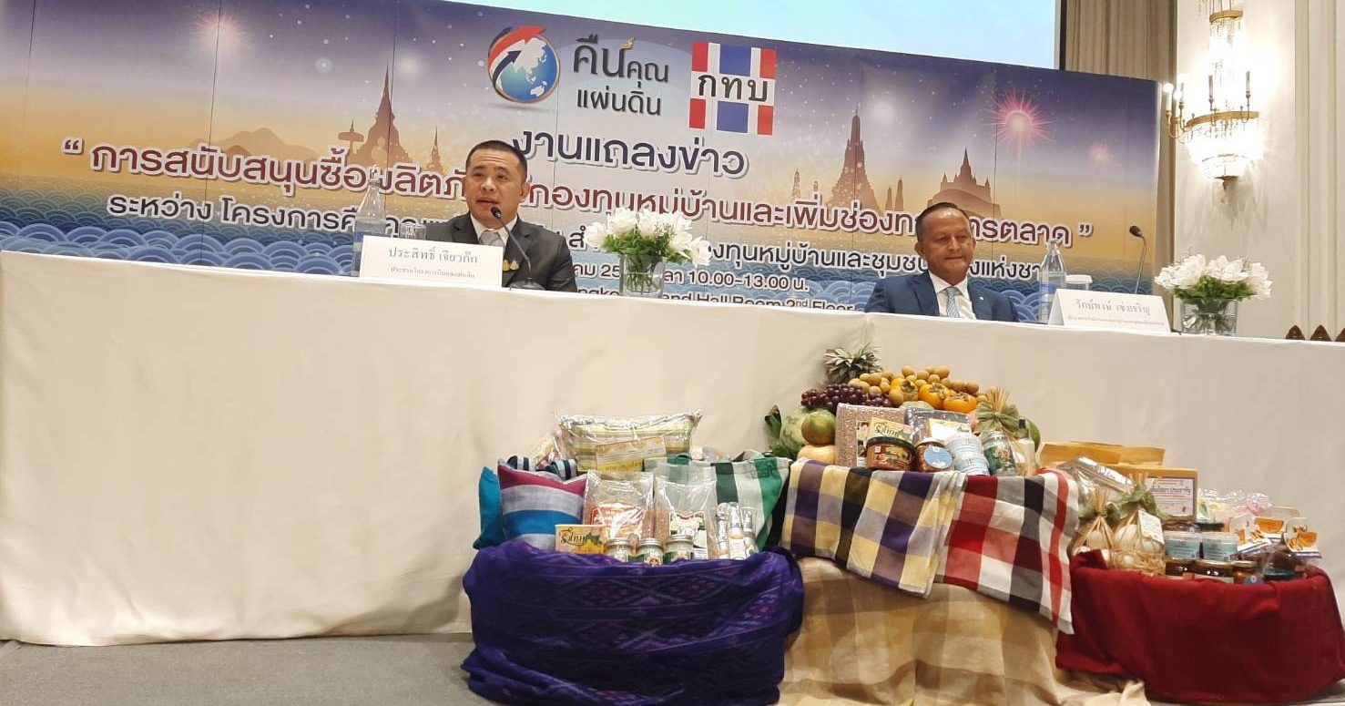 นายรักษ์พงษ์ เซ่งเจริญ ผู้อำนวยการ สำนักงานกองทุนหมู่บ้านและชุมชนเมืองแห่งชาติ (สทบ.) ร่วมมือกับนายประสิทธิ์ เจียวก๊ก ประธานโครงการคืนคุณแผ่นดิน เพื่อให้เป็นองค์กรนำร่องการซื้อสินค้าจากสมาชิกองทุนหมู่บ้าน จำนวน 10 ล้านบาท หวังเป็นตัวอย่างเพิ่มช่องทางการตลาด จากนั้นจัดซื้อต่อเนื่องตลอดทั้งปี 10 ล้านบาทต่อเดือน เพื่อให้ทุกหน่วยงาน หรือสมาชิกกองทุนหมู่บ้านด้วยกันเองซื้อสินค้ากองทุนหมู่บ้านทั่วประเทศมากขึ้น