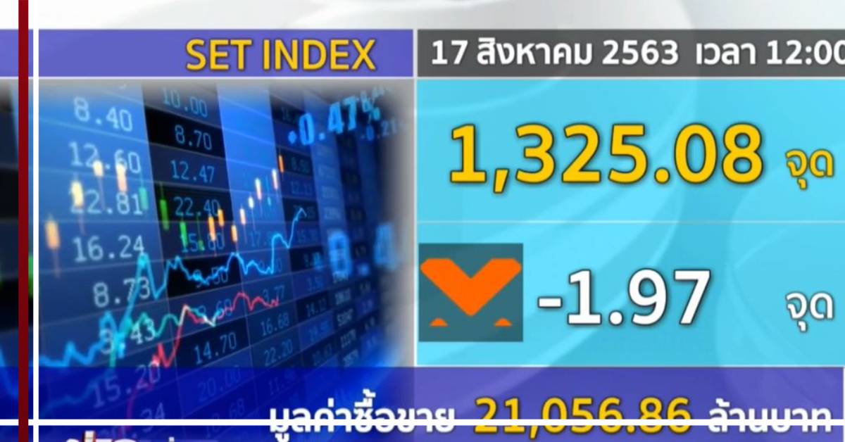 กทม. 17 ส.ค. – หุ้นไทยช่วงเช้าแกว่งแคบๆ คล้ายภูมิภาค ขณะที่ยังมีความคืบหน้าวัคซีนต้านไวรัสโควิด-19 ของรัสเซียด้วย ส่วนตัวเลขจีดีพีของสภาพัฒน์ไตรมาส 2 ติดลบน้อยกว่าที่ตลาดคาดการณ์ไว้ ดัชนีช่วงเที่ยงอยู่ที่ 1,325.08 จุด ลดลง 1.97 จุด มูลค่าซื้อขาย 21,056.86 ล้านบาท