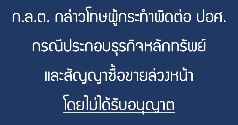 กรุงเทพ ฯ 18 ส.ค. – ก.ล.ต. กล่าวโทษนายอาทิตย์ สุนทวนิค ต่อกองบังคับการปราบปรามการกระทำความผิดเกี่ยวกับอาชญากรรมทางเศรษฐกิจ (ปอศ.) กรณีประกอบธุรกิจหลักทรัพย์และสัญญาซื้อขายล่วงหน้าโดยไม่ได้รับใบอนุญาต