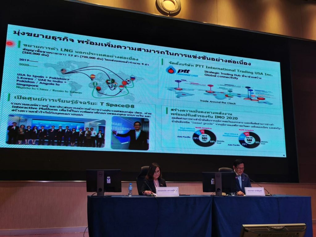 “โควิด-19 ส่งผลกับระบบเศรษฐกิจและอุตสาหกรรมทั่วโลก ซึ่งขณะนี้ตัวเลขจีดีพีของไทยหลายฝ่ายประเมินว่าอาจลดลงตั้งแต่ร้อยละ 5-8.8 ซึ่งกลุ่ม ปตท.ได้รับผลกระทบทั้งในแง่ยอดขายและราคาผลิตภัณฑ์ที่ลดลง ดังนั้น จึงคาดว่ารายได้ปีนี้จะต่ำกว่าปีที่แล้ว ไม่ต่ำกว่า 2 หลัก จากที่ปีที่แล้วมียอดขายประมาณ 2.2 ล้านล้านบาท โดยปีนี้คาดว่าราคาน้ำมันดิบดูไบเฉลี่ย 40-45 ดอลลาร์สหรัฐ/บาร์เรล จากปีที่แล้วราคาเฉลี่ย 63.5 ดอลลาร์/บาร์เรล อย่างไรก็ตาม ประเมินว่าครึ่งปีหลังยอดขายน่าจะดีกว่าครึ่งแรกของปีนี้ ซึ่งเป็นผลมาจากคลายล็อกดาวน์” นายอรรถพล กล่าว