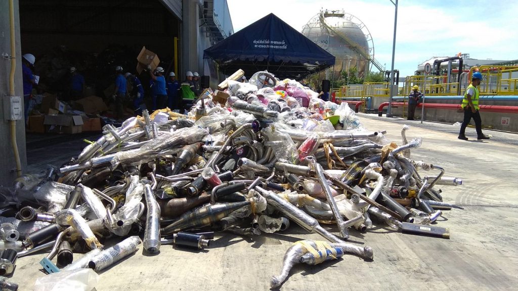 สำหรับกระบวนการทำลาย สมอ.ร่วมกับบริษัท เอสซีจี ซิเมนต์ จำกัด โรงไฟฟ้ามาบตาพุด อีโค่-เอ็นเนอร์ยี แพลนท์ ซึ่งเป็นโรงงานกำจัดขยะอุตสาหกรรมชั้นนำของประเทศสามารถรองรับขยะอุตสาหกรรมได้หลายประเภทและขนาด ทั้งอันตรายและไม่เป็นอันตราย โดยทุกขั้นตอนเป็นแบบระบบปิดมีระบบการควบคุมมลพิษ และของเสียตามมาตรฐานสากล ตั้งแต่การรับขยะอุตสาหกรรมจากผู้ประกอบการ การขนส่งไปยังจุดคัดแยกประเภทเพื่อเตรียมกำจัด การเข้าสู่กระบวนการกำจัดด้วยเทคโนโลยีแก๊สซิฟิเคชั่น ร่วมกับแอชเมลติ้ง ซึ่งเศษวัสดุที่ได้จากการเผาไหม้ เช่น อะลูมิเนียม เหล็ก เถ้าลอย ยังนำกลับไปใช้ใหม่ได้ ส่วนวัสดุเผาไหม้ไม่ได้ สามารถนำไปใช้เป็นวัตถุดิบแทนการก่อสร้างถนนได้ โดยกระบวนการนี้ทำให้ไม่เหลือขยะอุตสาหกรรมที่ต้องกำจัดเพิ่ม นอกจากวัสดุที่เป็นผลพลอยได้ ซึ่งสามารถนำไปใช้ประโยชน์อื่น ๆ ได้อีกตามหลักการเศรษฐกิจหมุนเวียน.-สำนักข่าวไทย